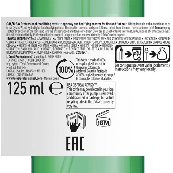 La brume Volumetry Serie Expert de L’Oréal Professionnel est un soin texturisant qui vient décoller les racines des cheveux fins et plats, leur donnant ainsi volume et légèreté. Formulée à partir d’acide Salicylique et l’Hydralight, la brume Volumetry donne du corps aux cheveux en les gainants. Le petit + ? Effet brillance garanti.