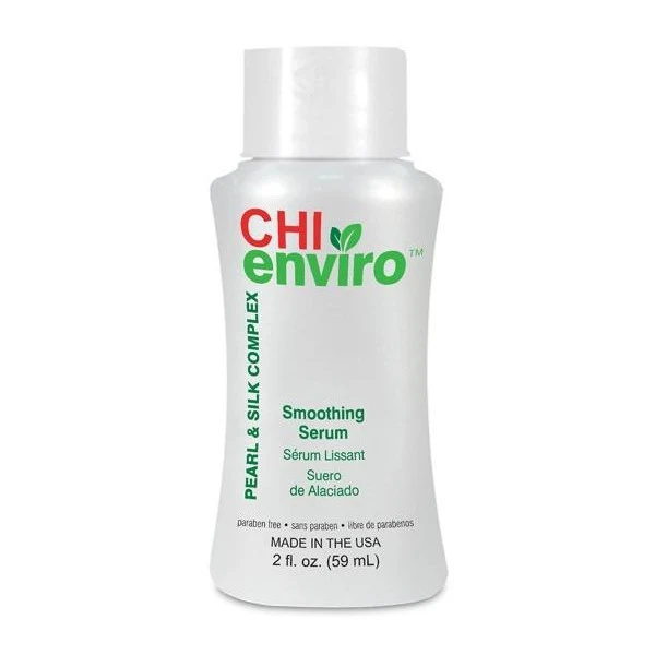 Le sérum lissant Enviro CHI est un traitement léger avec des perles et de la soie pour hydrater tous les types de cheveux et de peau.