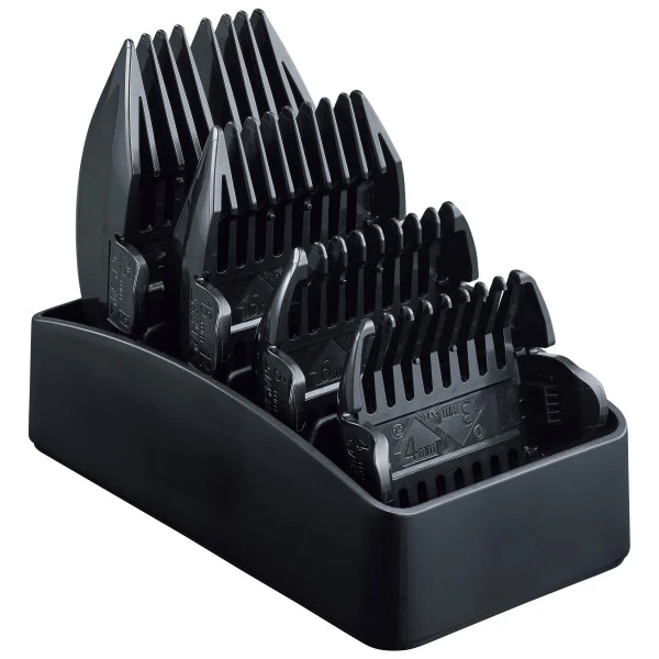 8 longueurs de coupe avec 4 doubles contre-peignes 3/4 mm ; 6/9 mm ; 12/15 mm ; 19/25 mm